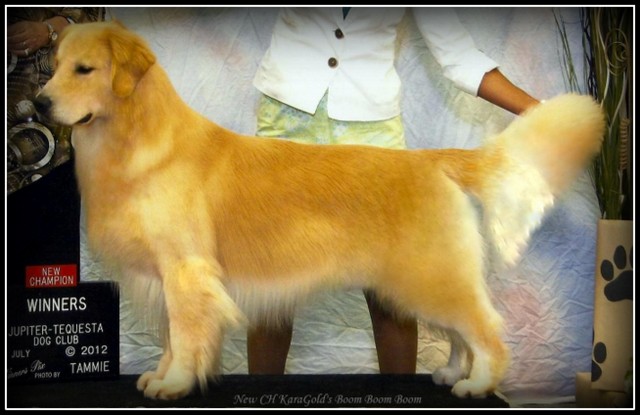 GCH CH KaraGold's Boom Boom Boom OS (8 SDHF Pts) Expertly Handled by Dylan Kipp!What a Team!!!Boomer is co-owned with good friend Karen Holbrook Click here to see more pictures of Boomer Boomer is available at Stud to approved Bitches.Frozen Semen is availableBoomer's Clearances Hips: OFA GR-103454E24M-VPI( 'Excellent')Elbows: OFA GR-EL24560M24-VPI Heart: OFA GR-CA20127/24M/S-VPIEyes: GR-EYE-1050/65M-VPIClick here to see Boomer's Puppies PedigreeParentsGrandParentsGreatGrandParents Am-Can CH Klaasem's Zoom Zoom Zoom OS, Can.SDHF, BIS, BISS CH Daybreak Varsity Jump OSAm-Can CH Cherrybrook Touchstone JH, WC, SDHF,OS BISSCan CH Claircrest Daybreak ArchetypeBIS Can CH Prospectors Klaasem Ooh La LaAm-Can CH Waynewood's Classic Gold OSAm-Can CH Prospector's Tribute To Sierra OD, SDHF CH KaraGold's A-Phair Of The Heart BOSSCH Deja Vu's Air Phare Miles OS, BISSCH Sunkota's Phorgone Conclusion OSDeja Vu's Summer's EveCH KaraGold's In The Trace Of AngelAm-Can CH Sandpoint Talisman OSCH KaraGold's Best Kept Secret OD Site Created & Maintained by KaraGold Goldens